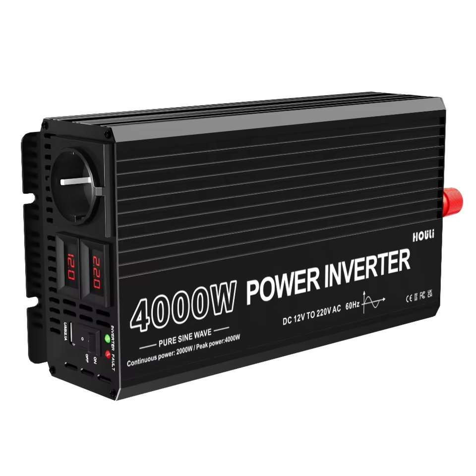 Convertisseur de puissance HOULI 24V DC 12V vers AC 220V 4000W, onduleur solaire à onde sinusoïdale pure, onduleur connecté au réseau 24V 220V 4000W
