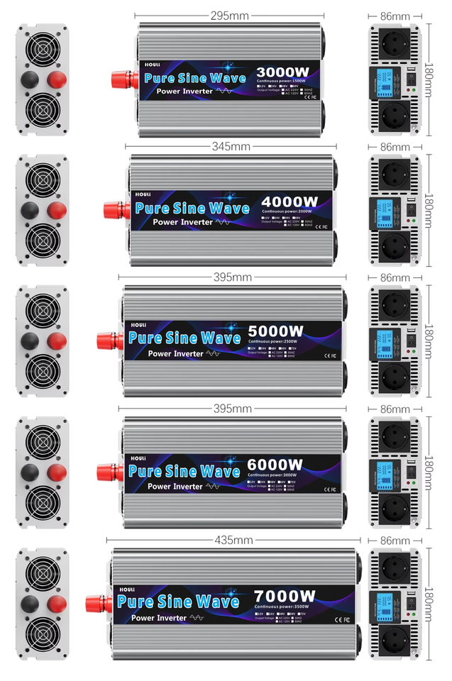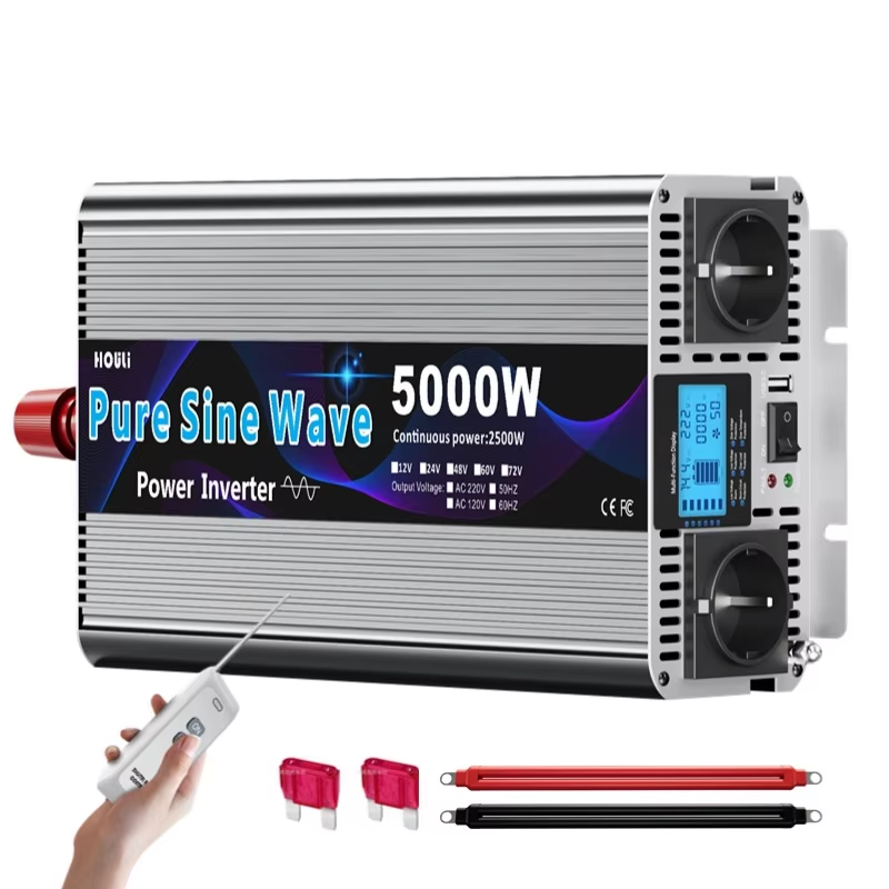 Convertisseur de puissance à onde sinusoïdale pure HOULI 5000W 12V 24V DC vers 110V 120V AC pour camping-car, camion, système solaire hors réseau