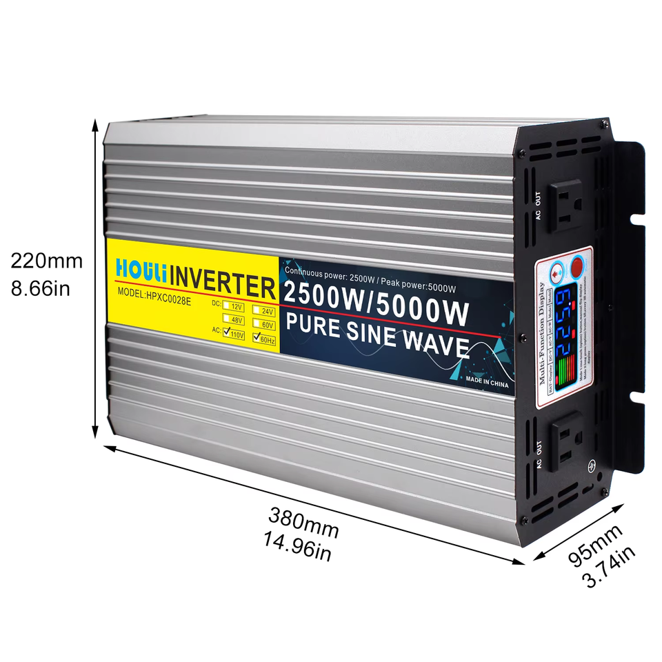 HOULI Onduleur Solaire 5000W à Onde Sinusoïdale Pure, Convertisseur de Puissance 5000 Watts 12V-110V AC, Inverseur Solaire 48V 5000W MPPT