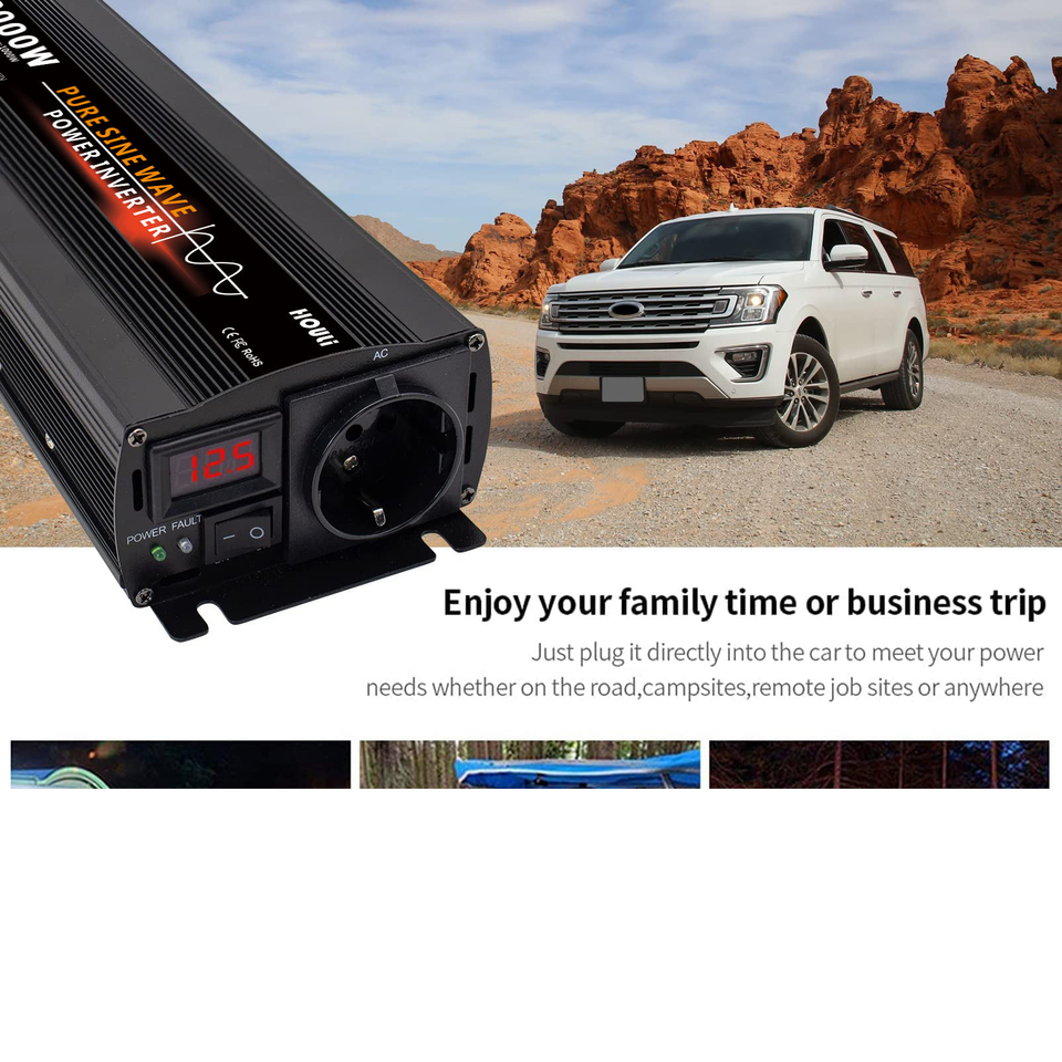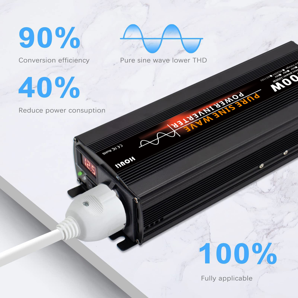HOULI Onduleur de Voiture à Onde Sinusoïdale Pure 2000W 12V 24V vers 220V, Onduleur Solaire 2000 Watts