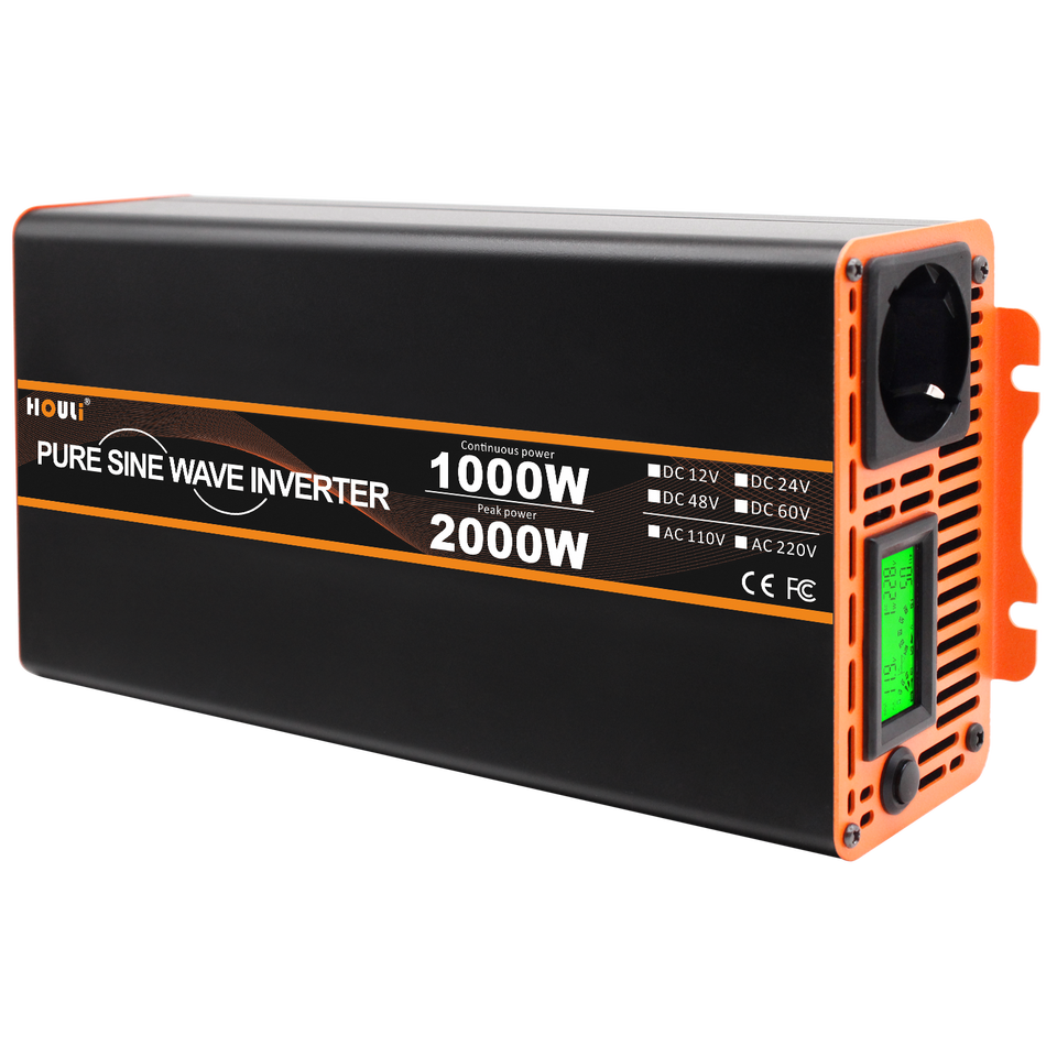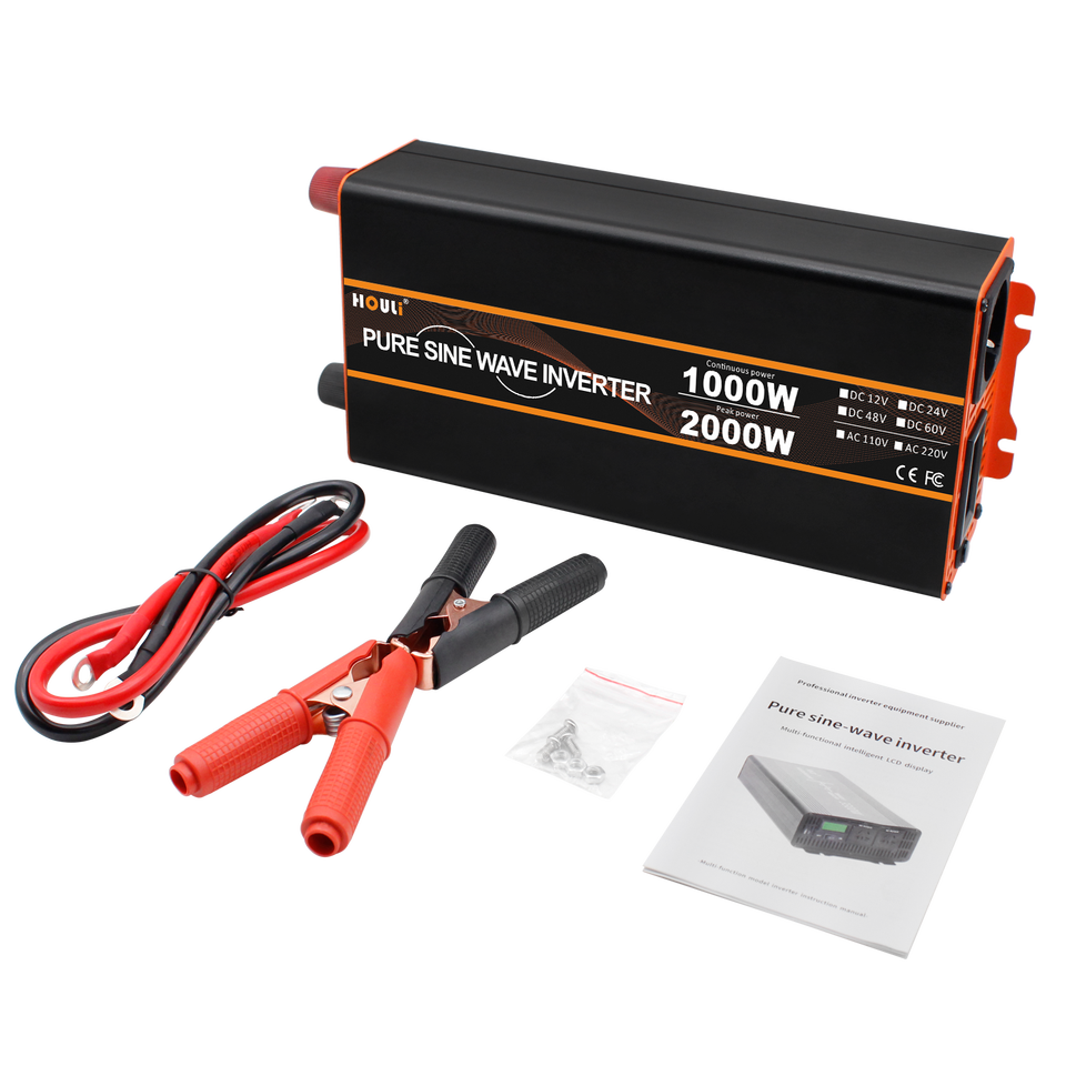Générateur portable à onduleur à onde sinusoïdale pure HOULI 2000W, convertisseur 12V 24V 48V 60V 230V, mini convertisseur à onduleur pur sinusoïdal