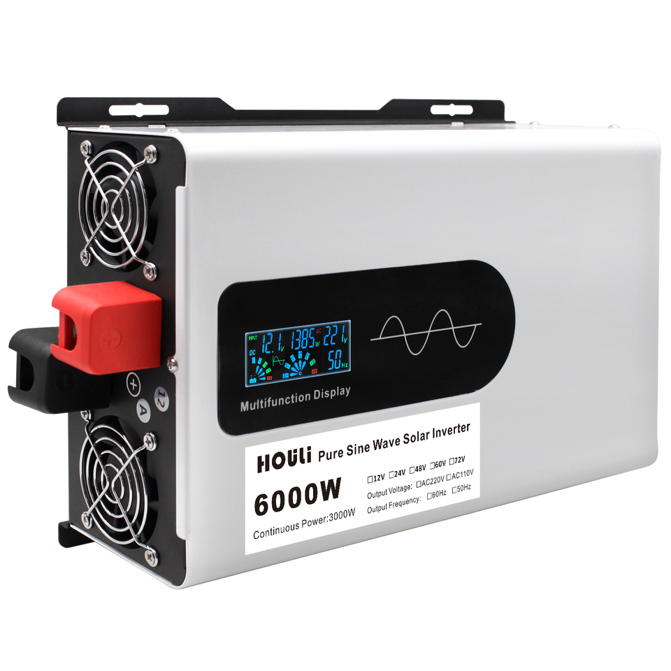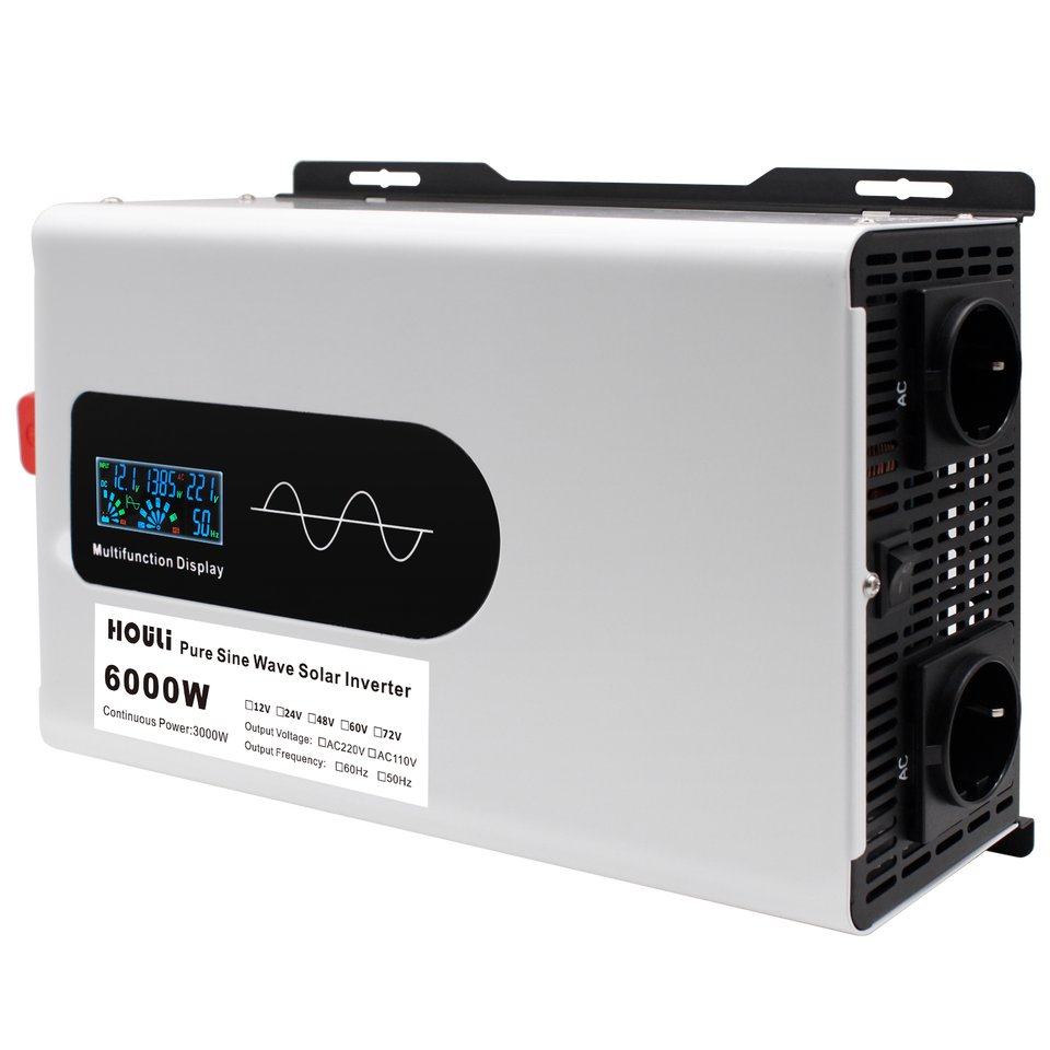 HOULI Onduleur solaire pour voiture 12V 230V 6000W, onduleur à onde sinusoïdale pure 12V vers 230V