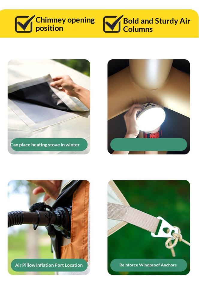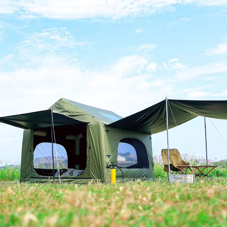 Tente de camping gonflable HOUMU de 6,5 m² avec auvent amovible, installation en 5 minutes, UPF50+, tente de glamping familiale avec accessoires complets