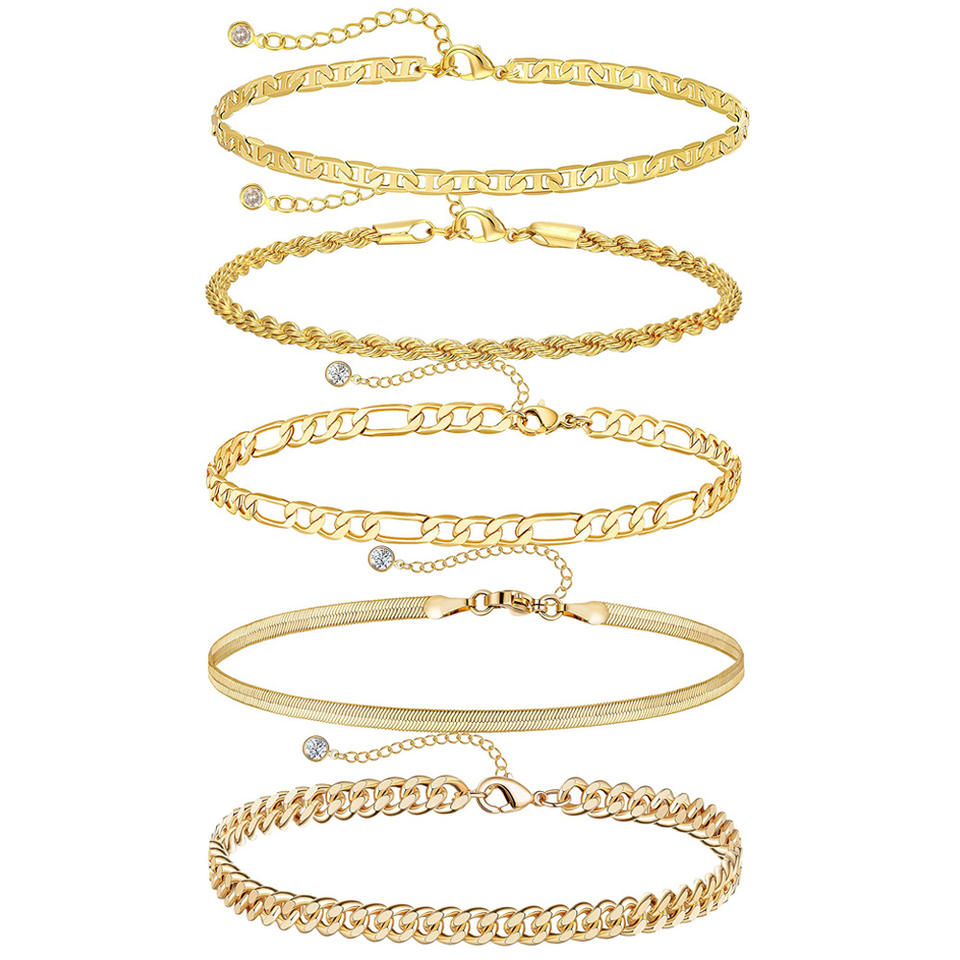 HOVANCI Chaîne de cheville fine personnalisable sans ternissement, maillons cubains, plaqué or 18 carats, en acier inoxydable, pour femme