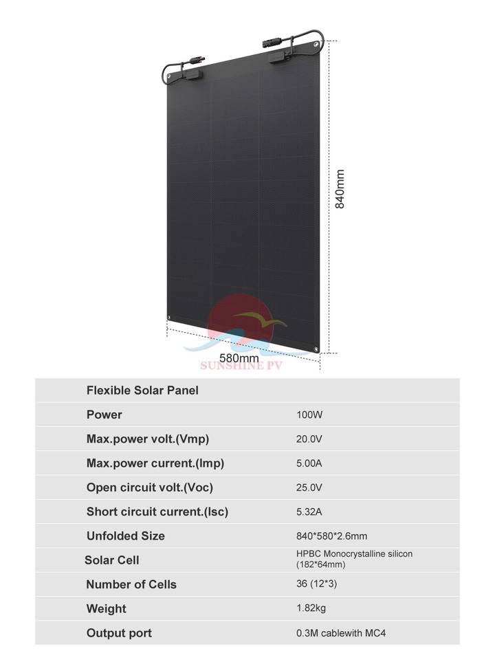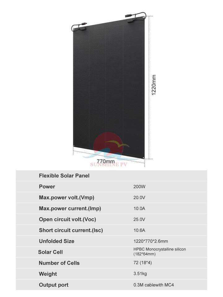 HPBC CELL mince léger IP68 ETFE bateau toit de voiture 12V 200W Camping panneaux solaires flexibles 4x4 Camping