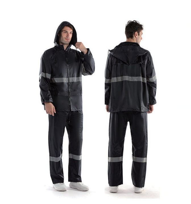 HPR0128 Manteau de pluie en polyester avec revêtement PVC, capuche et fermeture éclair STOCK
