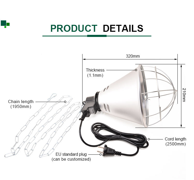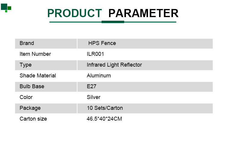 Réflecteur de lumière infrarouge en aluminium argenté personnalisé HPS E27 ILR001, capot réflecteur durable pour système de clôture électrique agricole