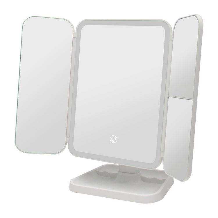 Miroir de Maquillage LED Pliable à Trois Volets avec Commande Tactile, Rechargeable par USB, Angle Réglable, 3 Couleurs, Commande en Gros RTS