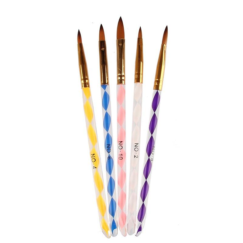 Lot de 5 pinceaux à ongles pour poudre acrylique, dessin, peinture, gel UV, stylo de sculpture, outils de beauté pour nail art - Prêt à expédier (RTS)