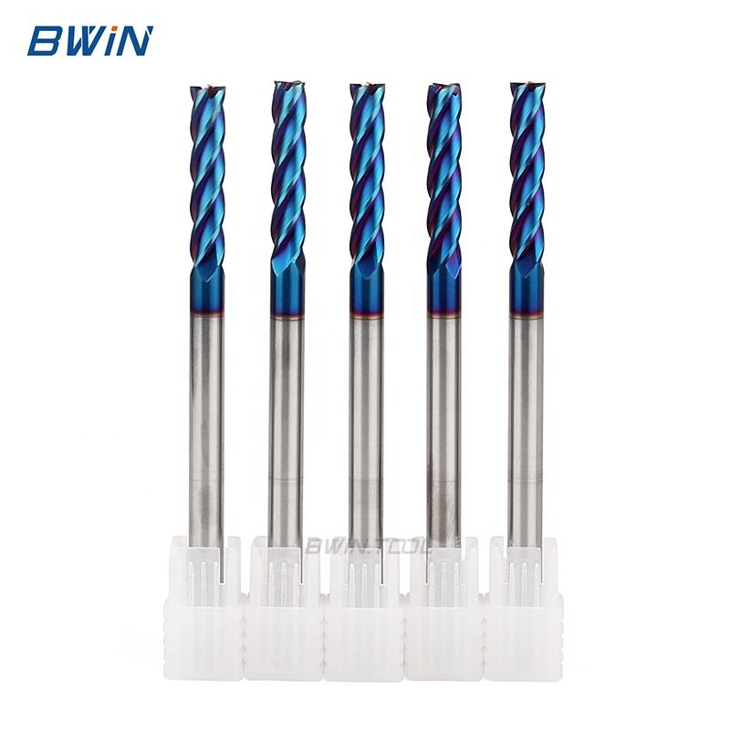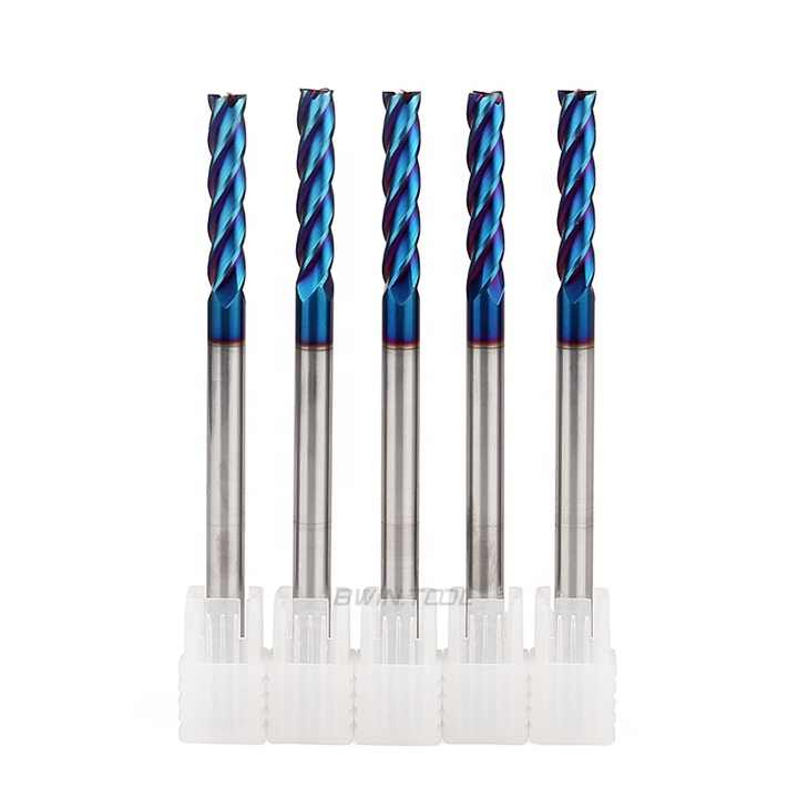 Fraise à queue en carbure monobloc HRC65 haute dureté, revêtement Nano Bleu HRC 65, diamètre 4 mm, outils de coupe en carbure pour machines CNC
