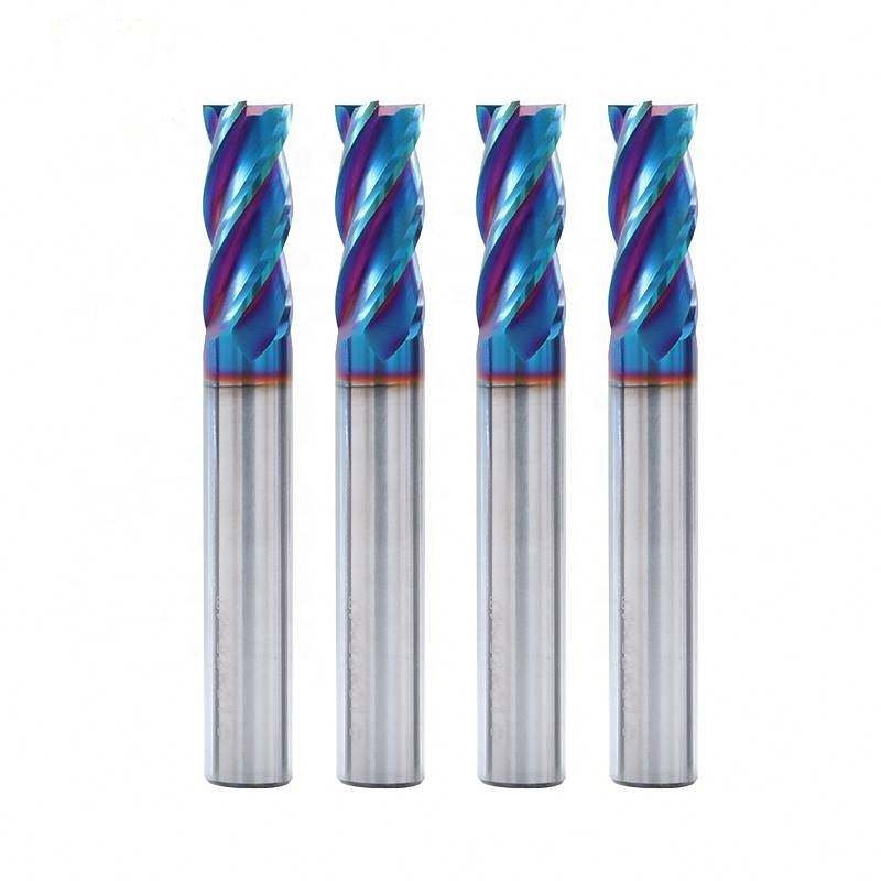Fraise à queue en carbure monobloc HRC65 à 4 dents avec revêtement Nano Blue pour routeur CNC