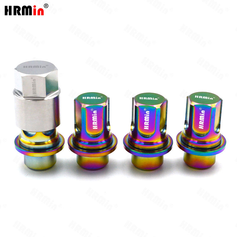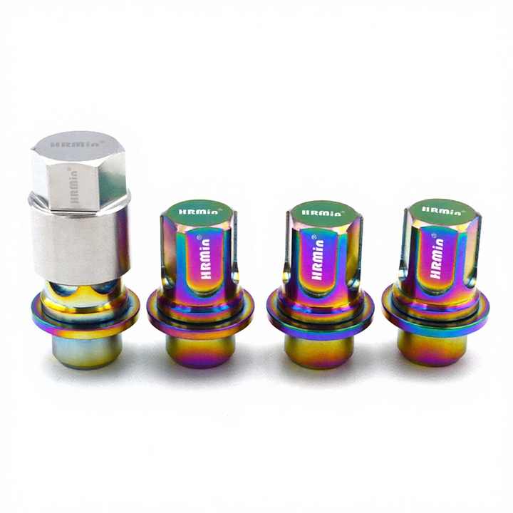 HRMin Nouvelle Écrou de Roue Antivol Arc-en-ciel en Titane Grade 5 (10.9) M14*1.5*43.5mm pour Voitures de Course Land Rover
