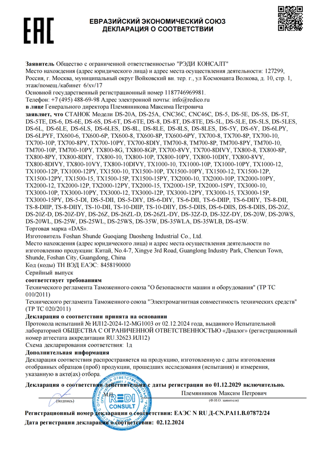 Machines Rapport D'essai:Fourni