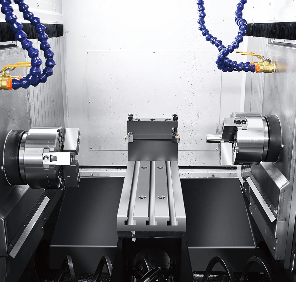 Tour CNC horizontal à lit plat de type gang, à double broche haute précision HS HS 5-DII, outil fixe