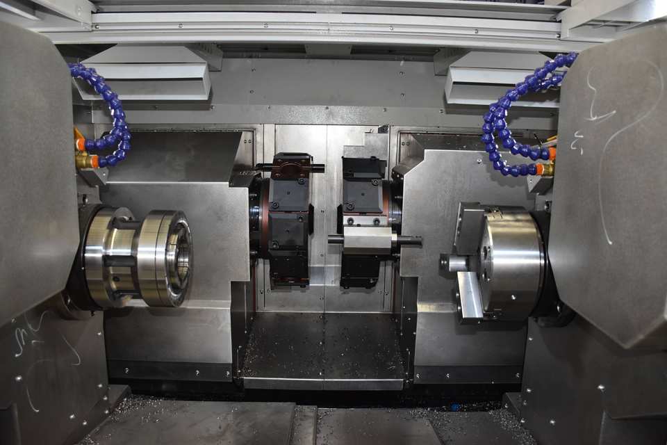 Tour CNC à double broche de haute précision HS 10 pouces HTS 10-DII à banc incliné, structure horizontale, usage moyen