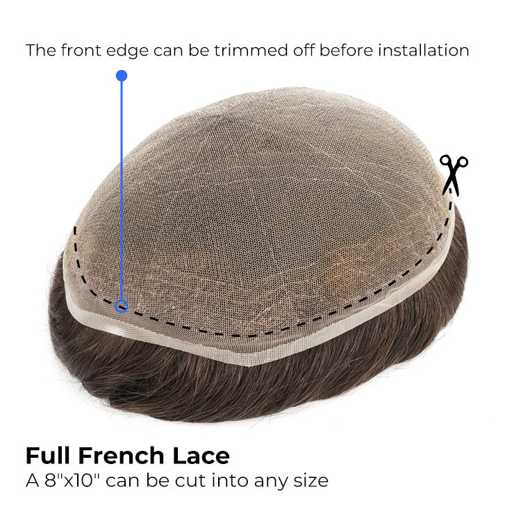 New Times Hair HS7F Toupet homme full‑lace en dentelle française, 100 % cheveux Remy indiens, cousu‑main, base 3,0 cm