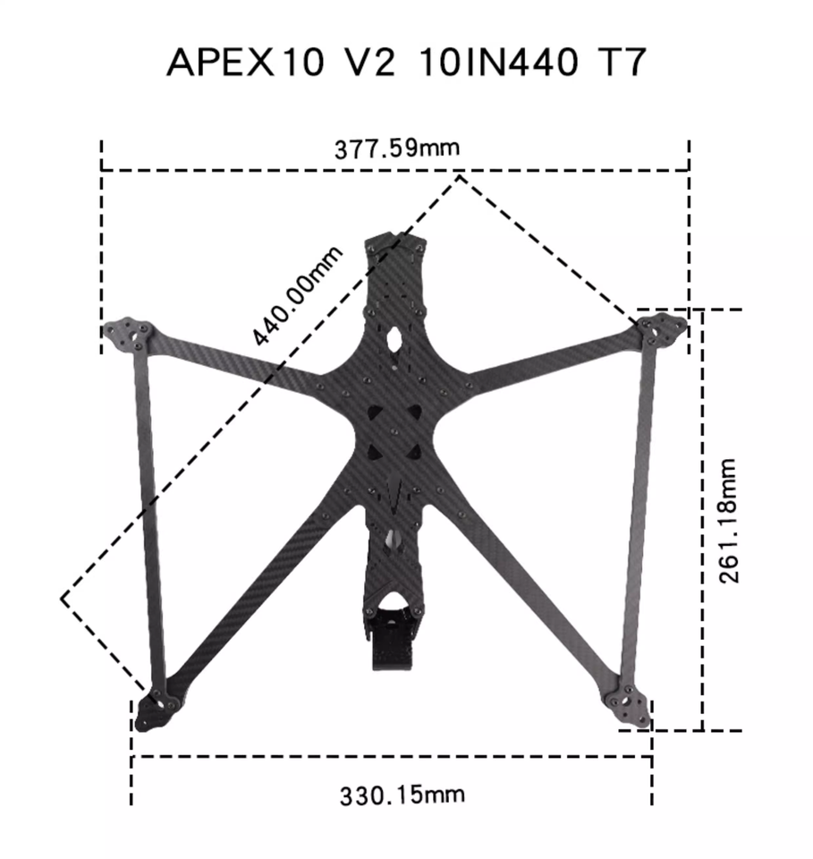 Kit de cadre de drone FPV longue portée HSKRC APEX10 V2 de 10 pouces, empattement de 440 mm, géométrie DC, bras de 7 mm, fibre de carbone T7 pour Cinelifter