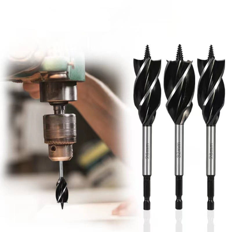 Foret hélicoïdal HSS 4 cannelures foret à bois tige hexagonale 8-35mm coupe rapide outil de menuisier outil de menuisier foret pour combinaison de coupe de bois
