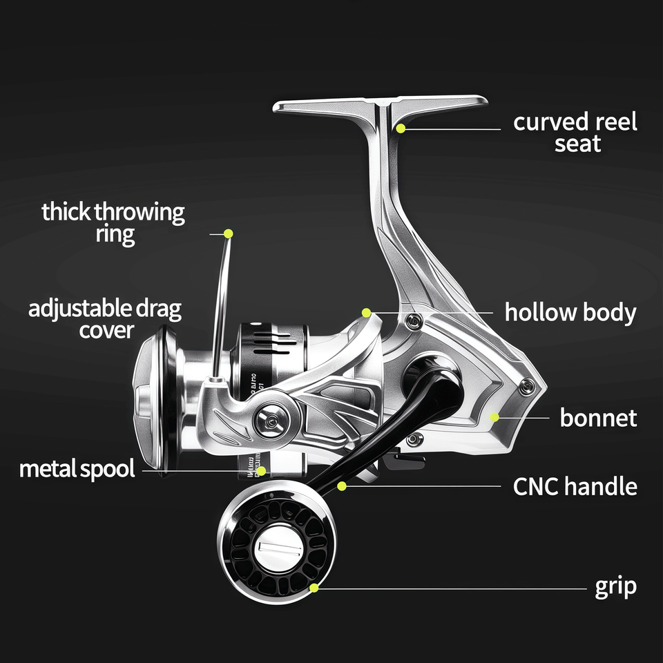 Corps en nylon renforcé + bobine en aluminium CNCMatériau du corps de bobine