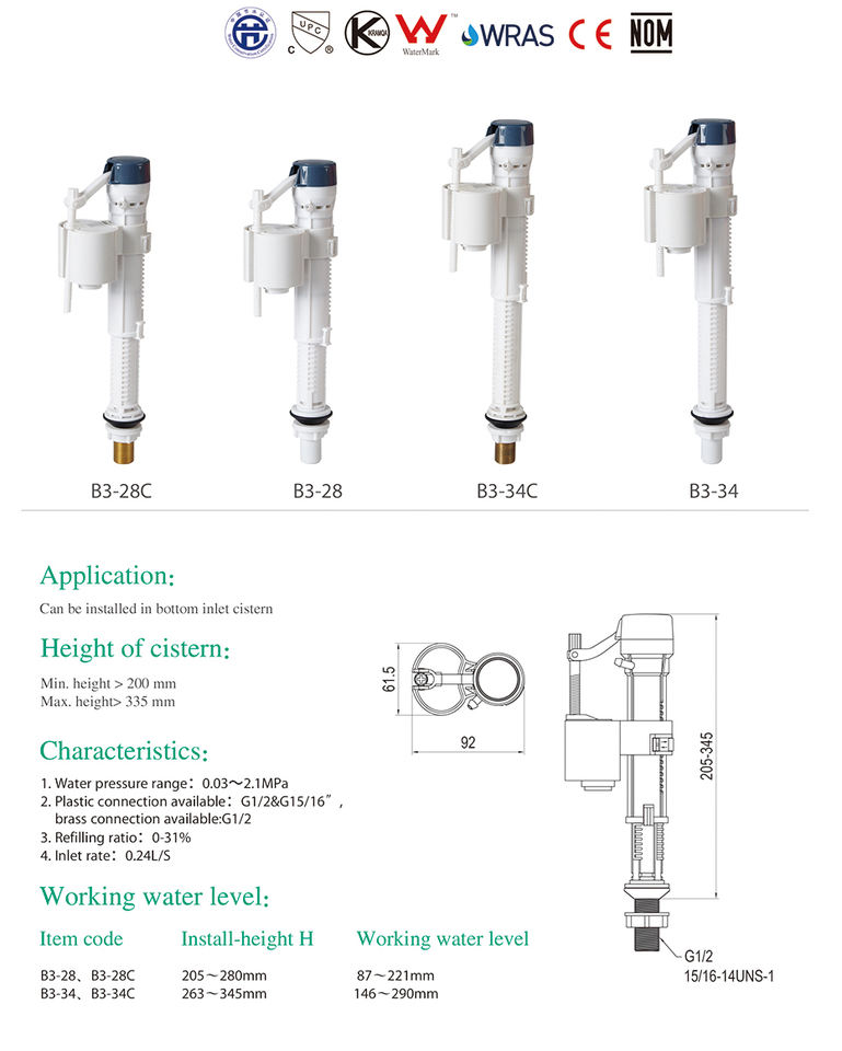 Nom du produit:Commande manuelle types toilettes en plastique robinet à flotteur