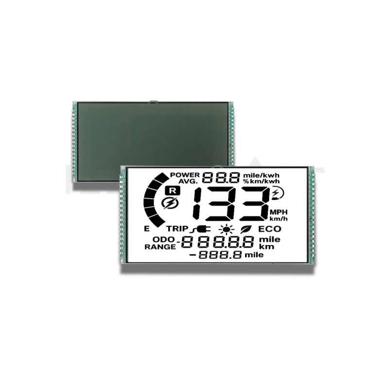 Écran LCD Monochrome Transflectif Illuminant HTN Positive 104x52.6x2.9, Conception Personnalisée, Connecteur à Broches 1/4, Angle de Vision 6/12 Heures pour