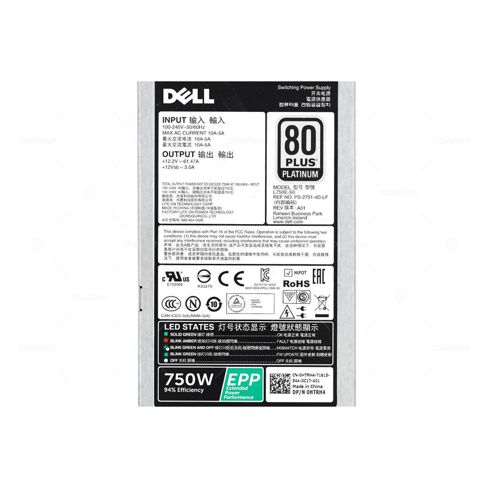 Alimentation HTRH4 DELL 750W 80 PLUS PLATINUM pour R730XD/R630 Reconditionnée