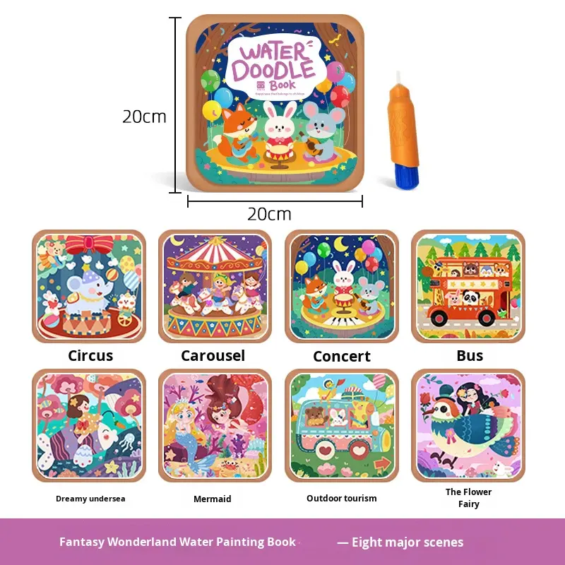 Livre de dessin à l'eau réutilisable HURREE pour enfants en EVA, jouet de peinture à gribouiller, thème animaux et nature, éducation préscolaire maternelle 4-6 ans