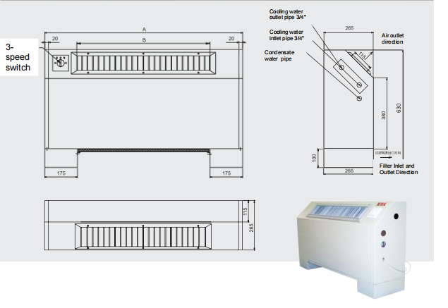 Unité de Ventilation Commerciale (FCU) à Refroidissement par Eau, Design Écologique, Montage au Sol, pour Solutions de Climatisation HVAC