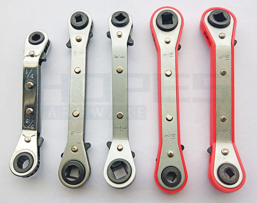 Clé à cliquet carrée 4-en-1 pour réparation de climatisation et réfrigération HVAC, embouts 1/4, 3/16, 3/8, 5/16