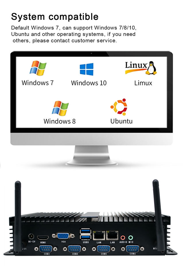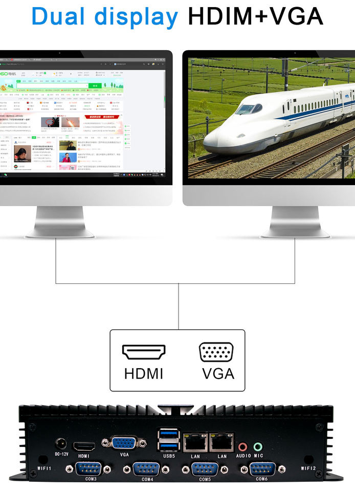 I/O Ports:HD-MI/VGA/RJ-45/USB/MIC/SPK/DC