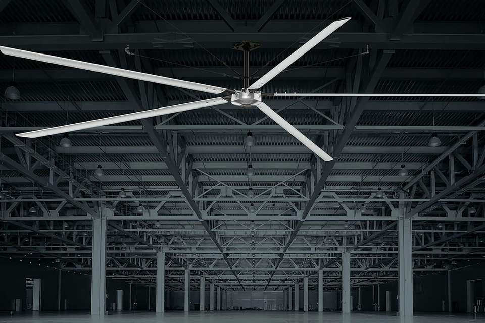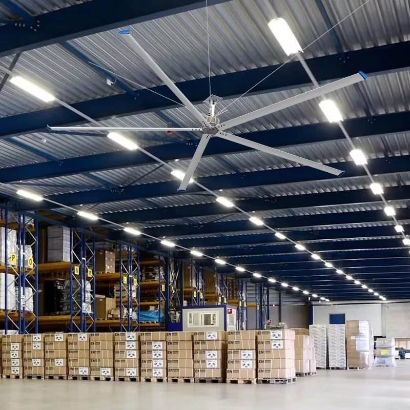 Ventilateur de plafond industriel HVLS 4,2 m (14 pi) en métal, contrôlé par application et à commande tactile, pour hôtels, extérieur et refroidissement d'entrepôts
