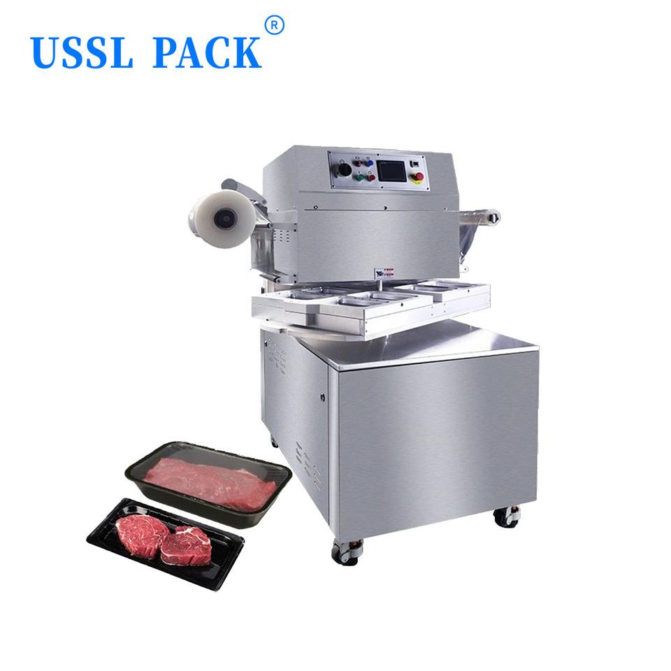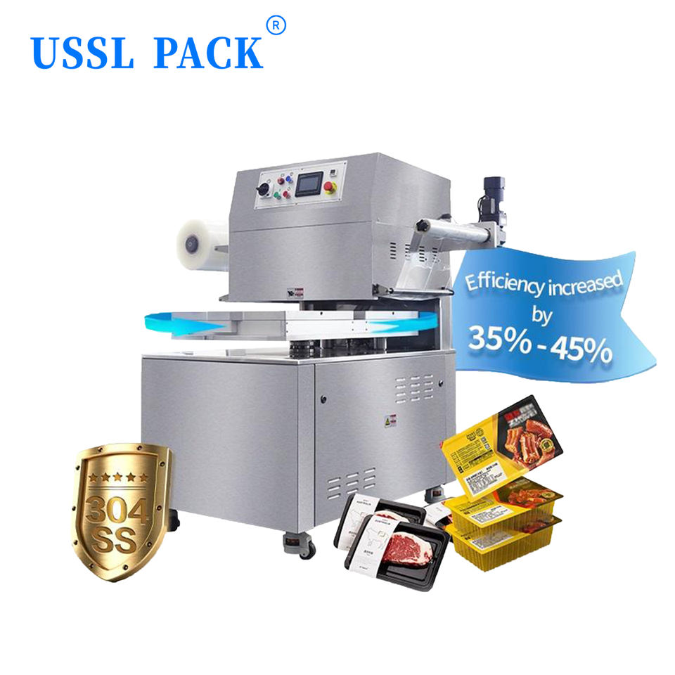 Machine de scellage de barquettes HVT-450R-4S pour viande fraîche et aliments préparés, scelleuse rotative de barquettes à viande, machine d'emballage sous vide