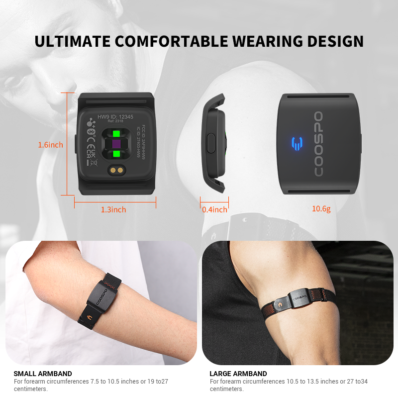 HW9 Armband Heart Rate Monitor HR Zones Calories IP67 Waterproof BLE 5.0 ANT+ 35-Hour Battery Life for Wahoo/ Cycling