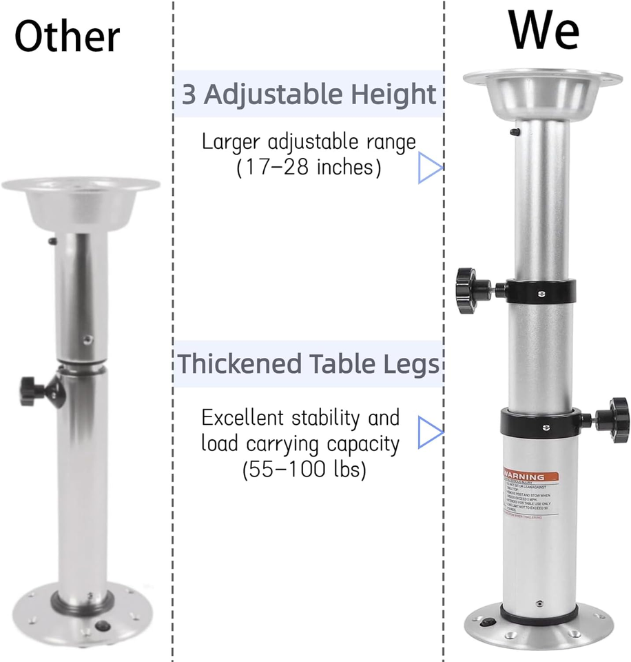 HWHongRV Piédestal de table de bateau RV en alliage d'aluminium réglable à 3 niveaux Cadre de montage télescopique intérieur détachable avec base de support