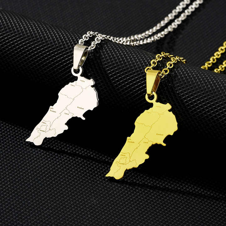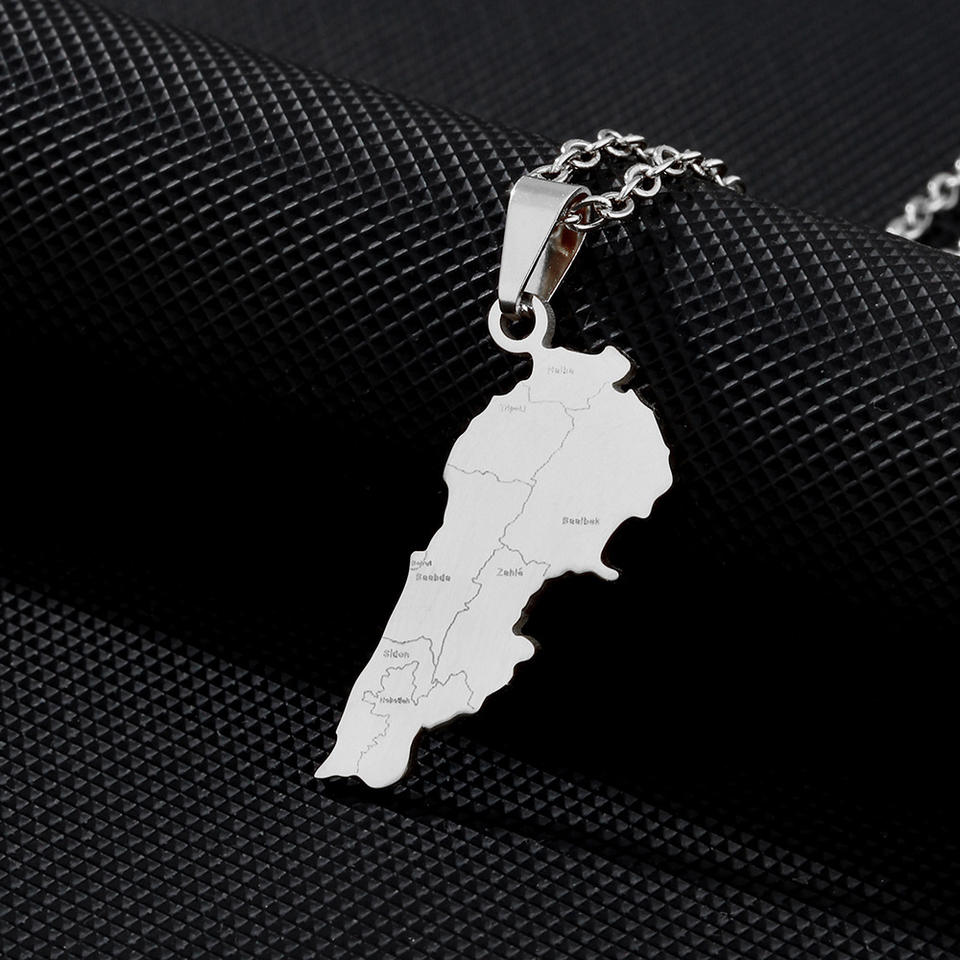 Collier chaîne HY Factory avec carte du Liban, en acier inoxydable argenté, plaqué or 18 carats, pendentif carte avec emblème du drapeau national du Liban