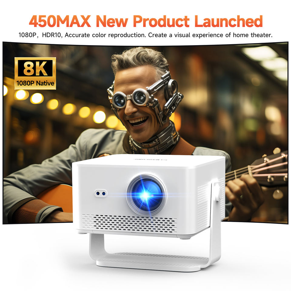 Projecteur LCD Magcubic HY450 Max 1100 Ansi Lumens 8K avec Correction Automatique de la Distorsion Trapézoïdale, Mise au Point Automatique, Rapport de Projection Court, Android 14