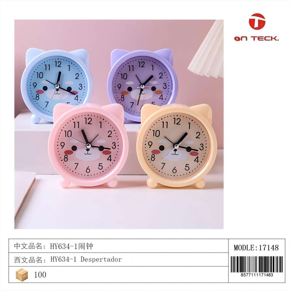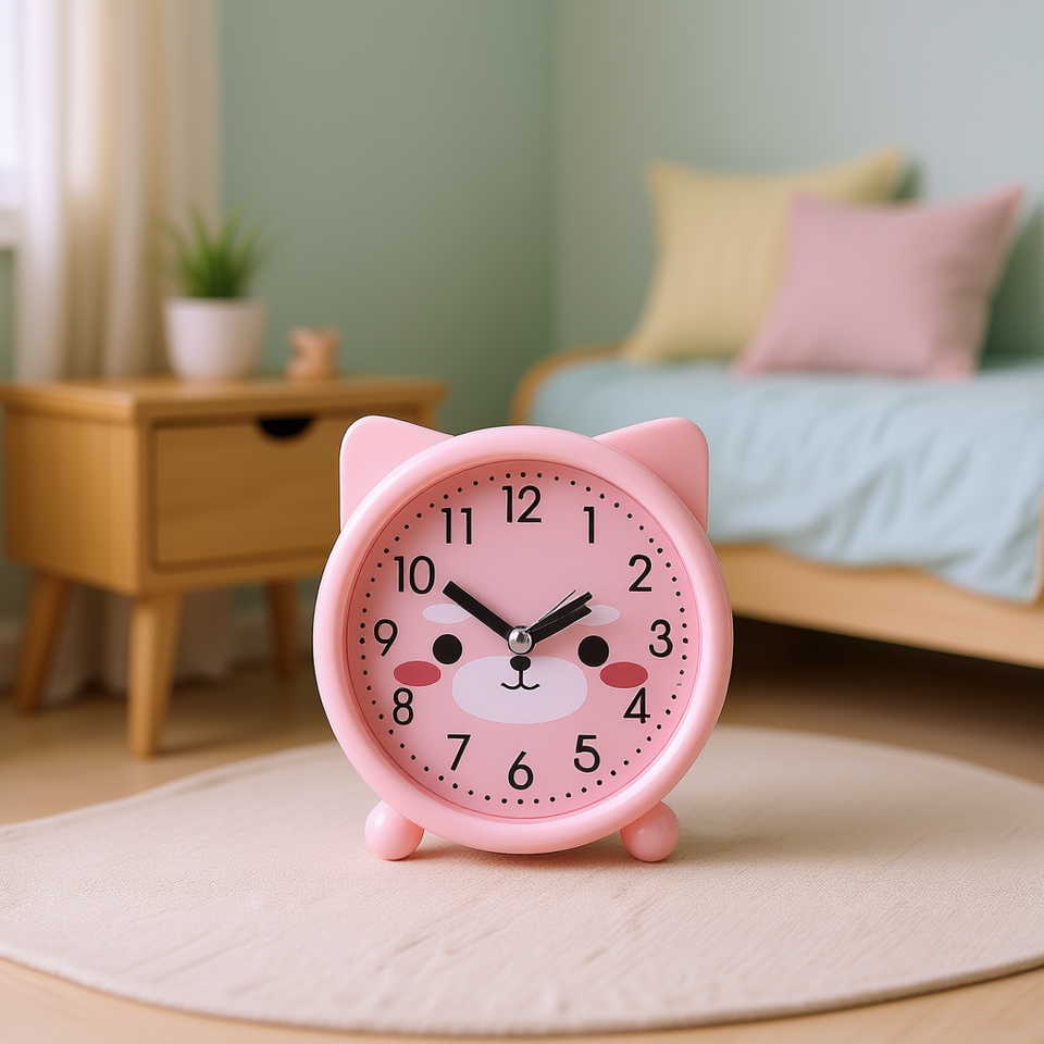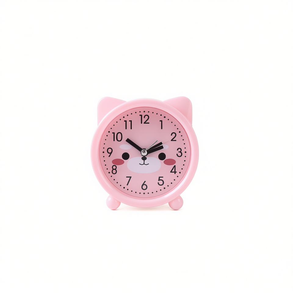 Réveil rose en forme de chat pour enfants, design compact en plastique, jouet éducatif unisexe pour 3-6 ans