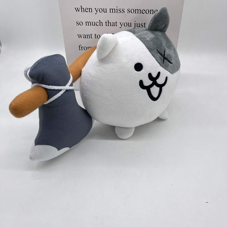 HY7 doux dessin animé rond bataille chat jouet avec peluche marron poignée hache accessoire cadeaux d'anniversaire gris chat peluche Animal