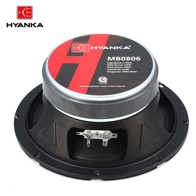 Haut-parleur de voiture HYANKA MB0806 8 pouces, haut-parleur de milieu de gamme avec Bullet, 180W RMS, grande puissance, sensibilité 95dB, bobine vocale de 2 pouces