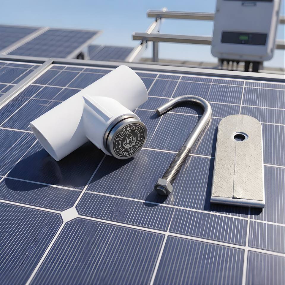 HYDROPLUS INTERNATIONAL Système de nettoyage de panneaux solaires avec buse à jet ventilateur, boulon en J réglable en acier inoxydable SS304 et connecteur en T en PVC pour kit de toiture