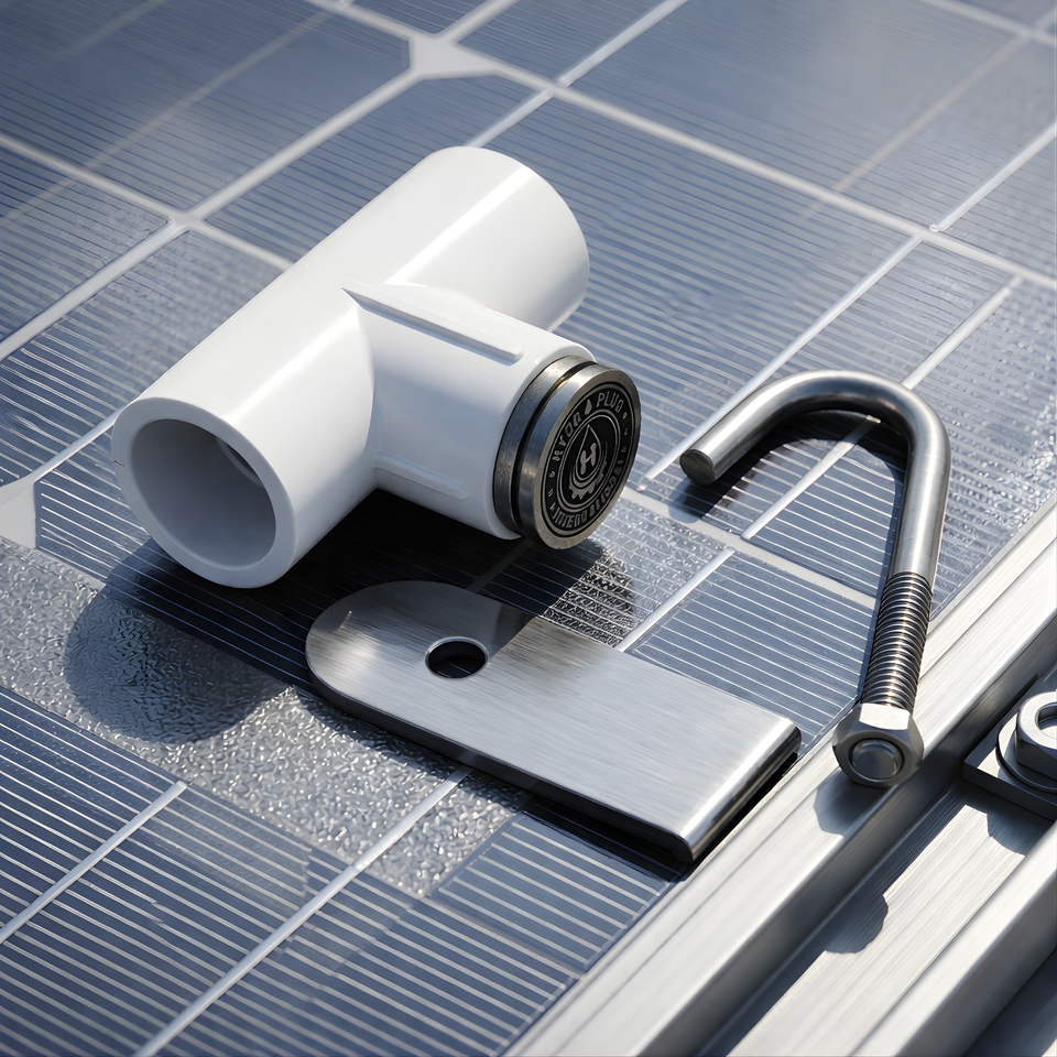 HYDROPLUS INTERNATIONAL Solar Rooftop Wide Angle Jet Spray Cleaning Nozzle SS304 Adjustable J Bolt PVC Tee Connector Panel Kit