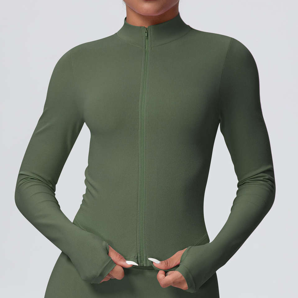 HYPEN SPORTS Veste de yoga légère à fermeture éclair, manches longues, col rond, coupe ajustée, en Spandex/Nylon respirant