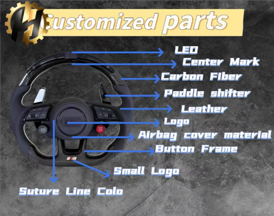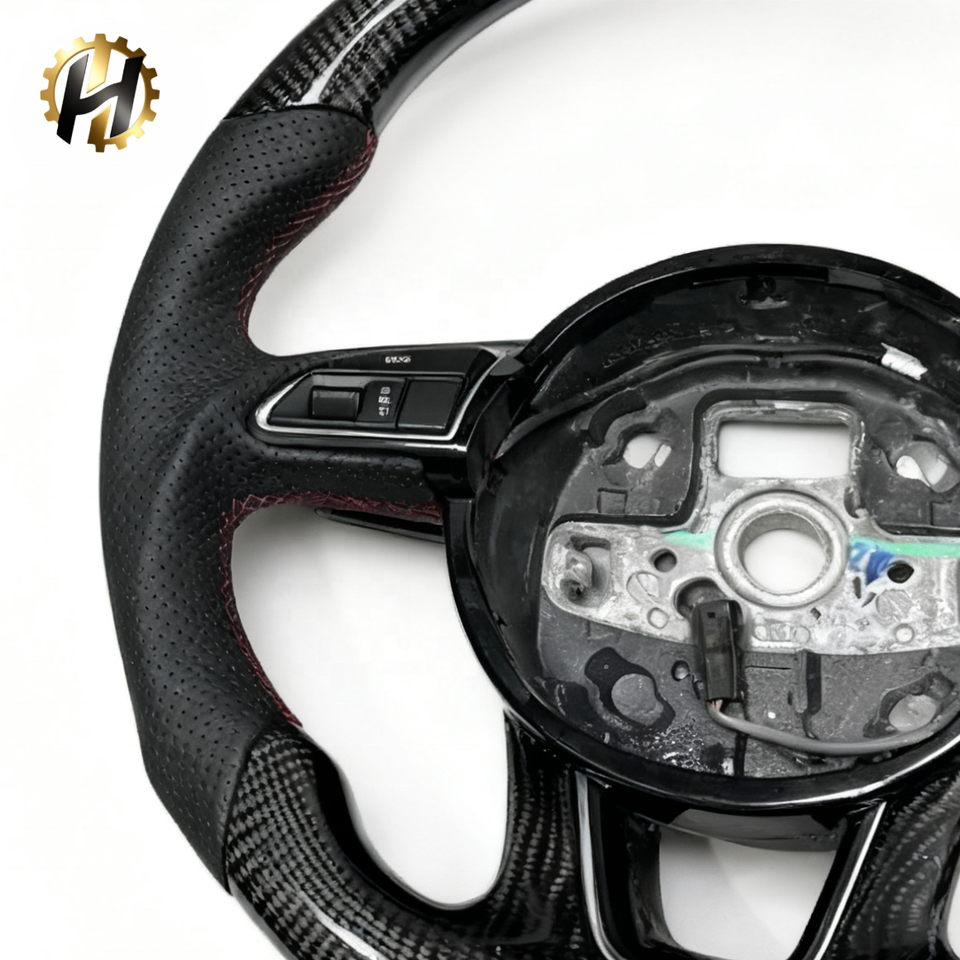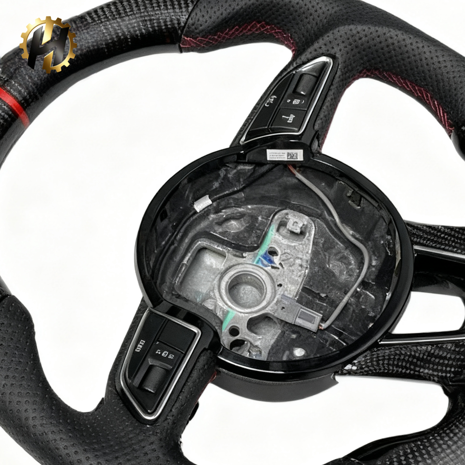 Volant de course HZ Racing ECR en fibre de carbone à fond plat, conçu sur mesure, rouge, pour Audi A3/A4 B9/A5 RS3/RS4/RS5/S3/S4