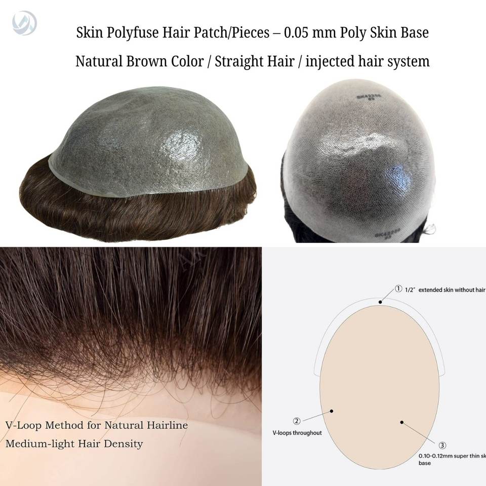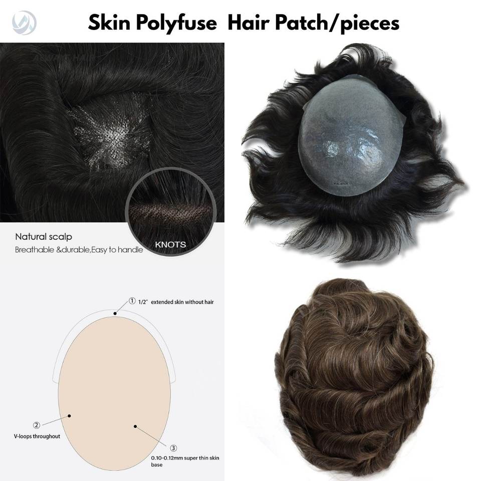 HZ087 Thin Skin Indian Virgin Hair Toupee Men 0204mm 0406mm V Loop Replacement Systems Right Design PU Straight Cut LUFA LFTP