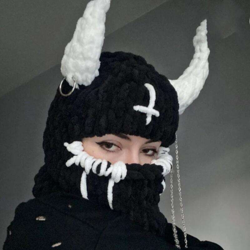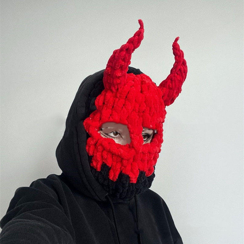 HZM-24439 Cache-cou en tricot personnalisé avec oreilles de lapin et cornes de démon, masque de ski en tricot avec oreilles de lapin