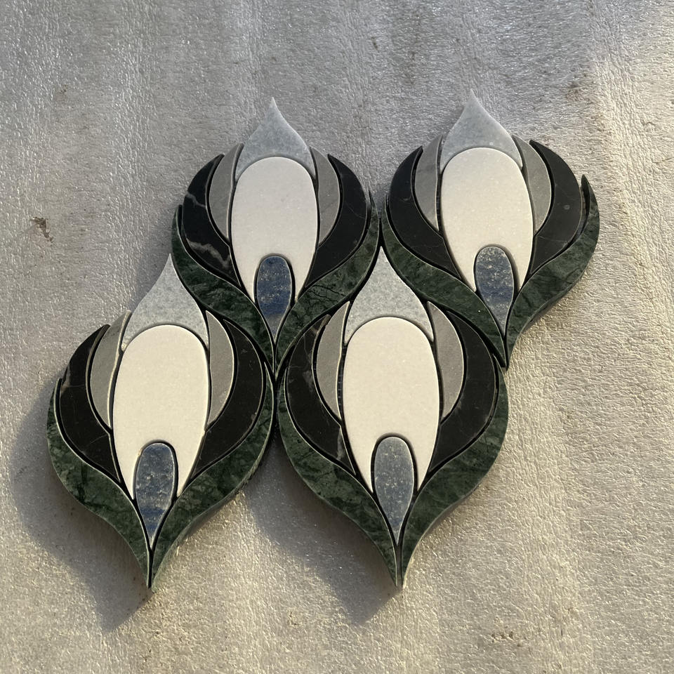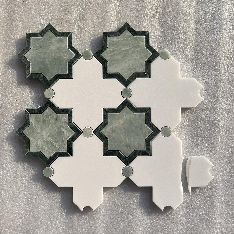 Mosaïque en pierre naturelle HZX, marbre Rosa Norvegia, cristal blanc, incrustation en laiton, mosaïque en marbre découpée au jet d'eau, design pour murs et sols