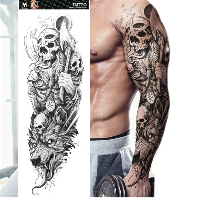 Autocollant de tatouage temporaire imperméable Hadiyah Beauty pour bras entier, motif Tigre, Lion, Loup, Œil, pour homme et femme, art corporel, manche, épaule, effet flash