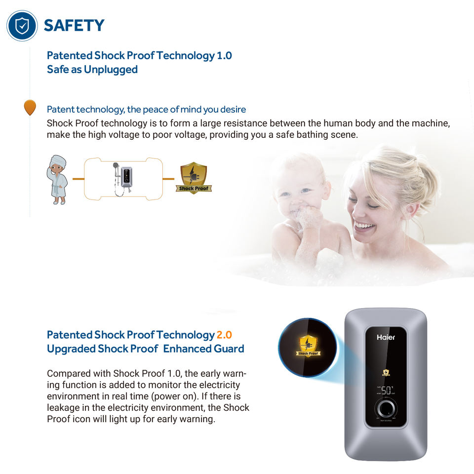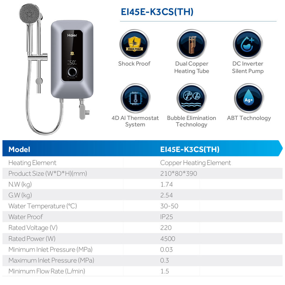 Haier 4.5kw CE CB Salle de bain 3 phases électrique sans réservoir douche instantanée chauffe-eau robinet avec chauffages sans réservoir combos
