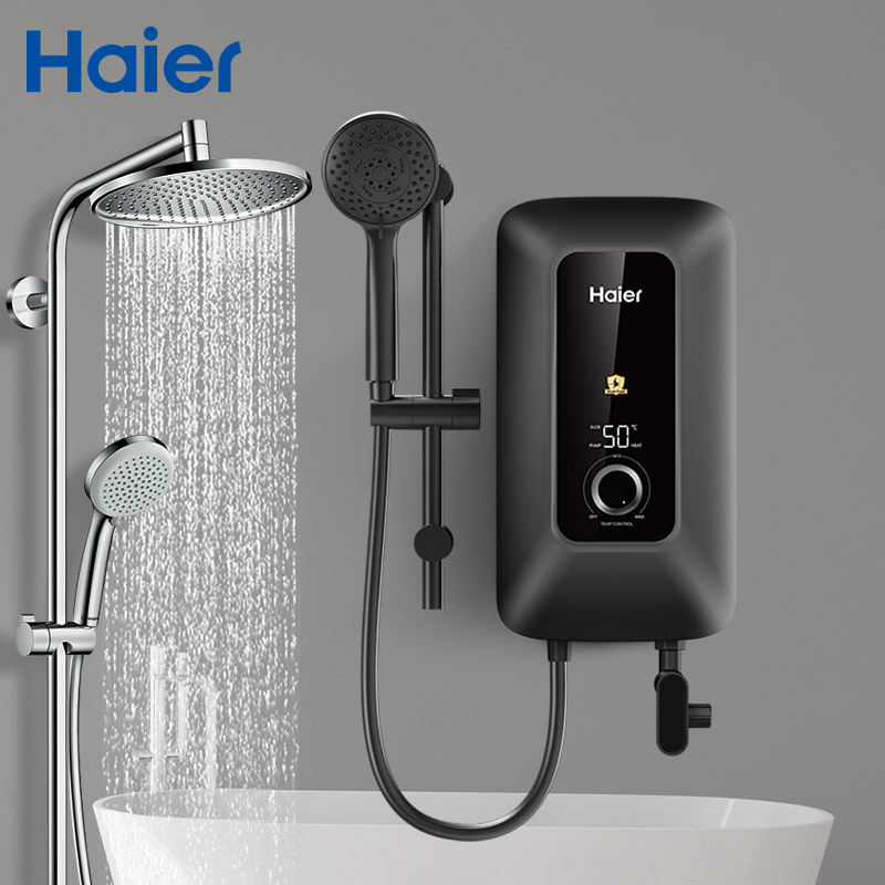 Chauffe-eau électrique instantané sans réservoir Haier anti-choc avec pompe et douchette pour petite salle de bain