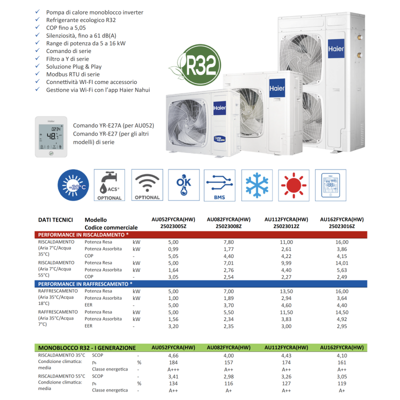 Pompe à chaleur hydronique monobloc Haier Super Acqua 8kW R32 A++ Inverter Air-eau pour système de chauffage domestique